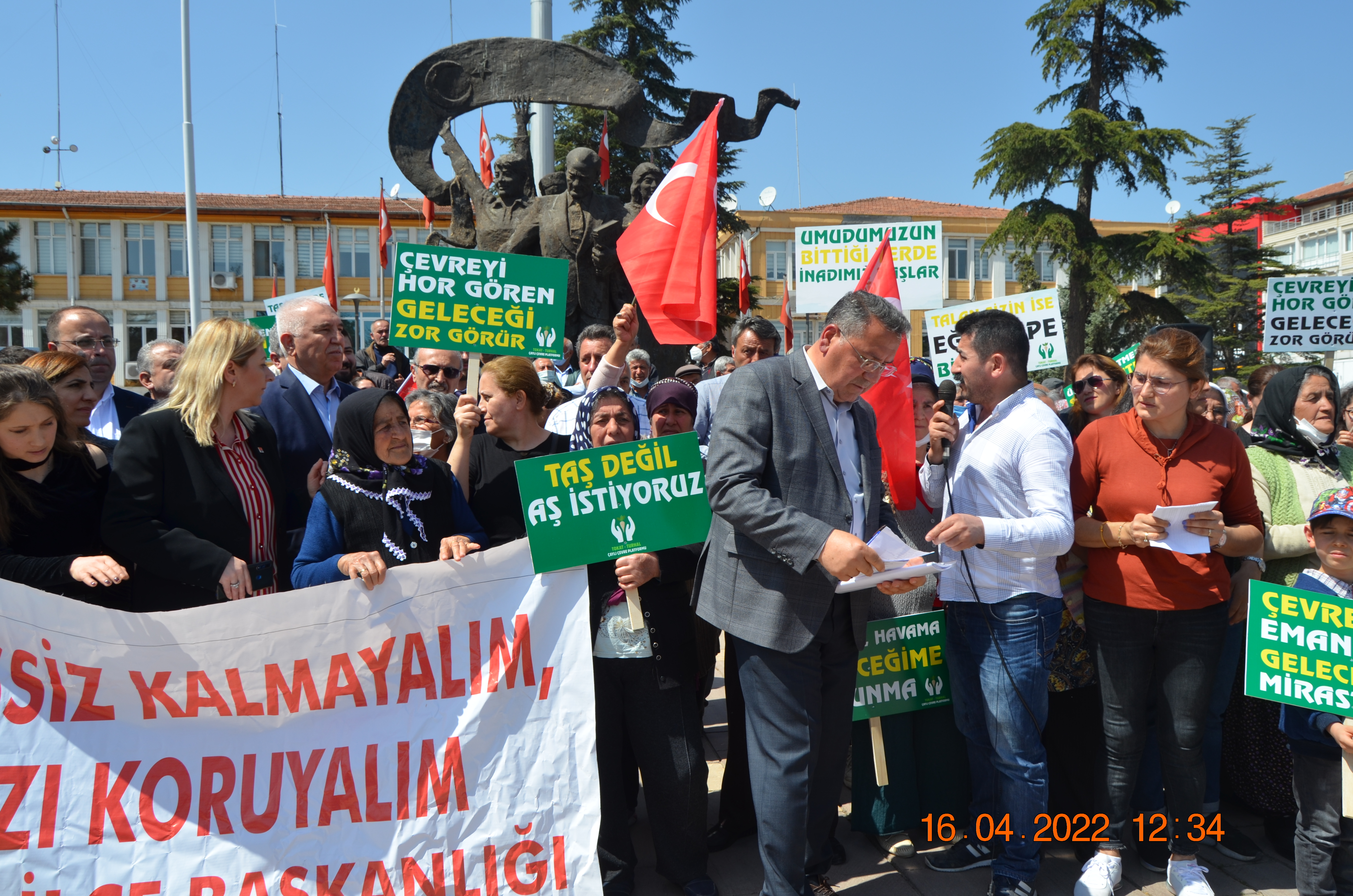 Siz değerli Turhal halkını, doğaseverleri, üreticileri, tüketicileri bu haklı mücadelemizde yanımızda görmek istiyoruz. Yiyeceğimiz ürünlerin sağlıklı, güvenilir ve ekonomik olması bizlerin elinde. Artık çok geç dememek için birlik olalım, gün dayanışma günüdür. Bizleri destekleyenlerle birlikte Turhal Belediyesine seslenmek istiyoruz. Bu işten vazgeçin, sesimize kulak verin, halkın karşı çıkmasına rağmen burada ısrar etmeyin. Bırakın dağlar taşlar yerinde dursun, orada yaşayan insanların, hayvanların, bitkilerin vebaline girmeyin.