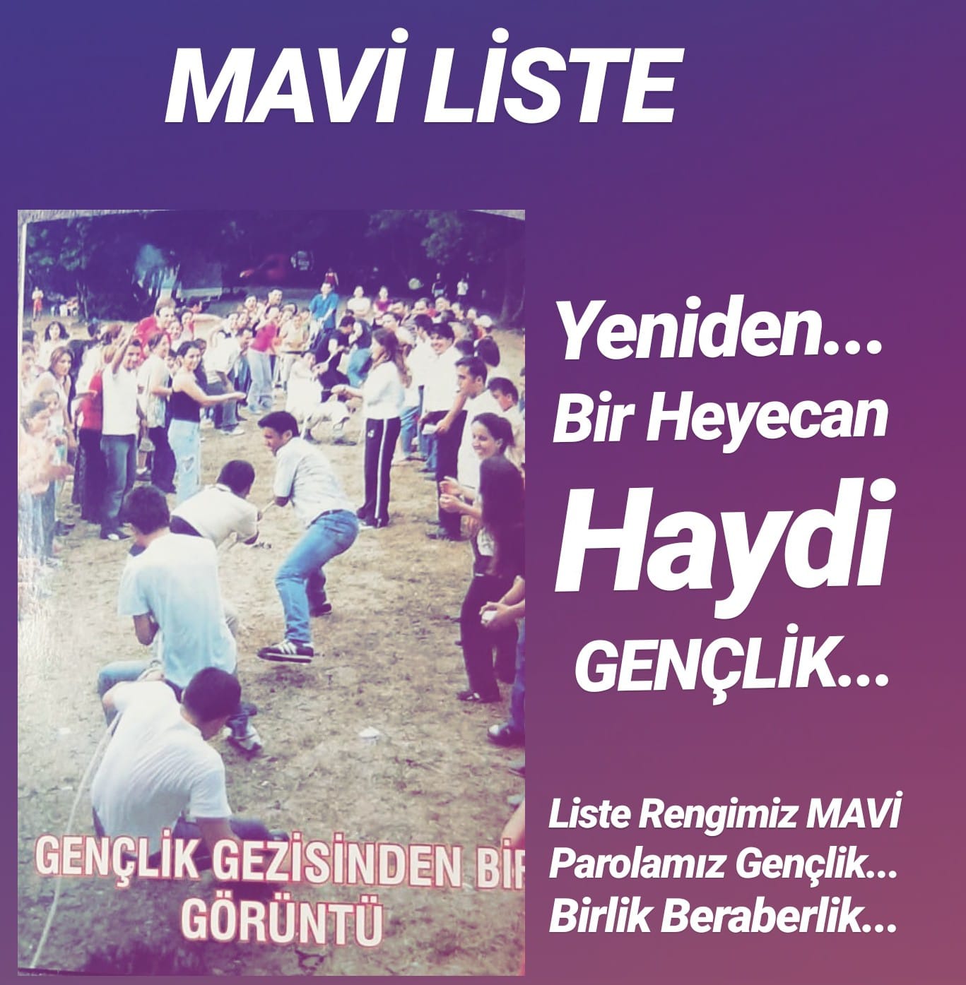 Gençlik için, gelecek için, Gökköy için, bir çift mavi gözün ışığında haydi yeniden…