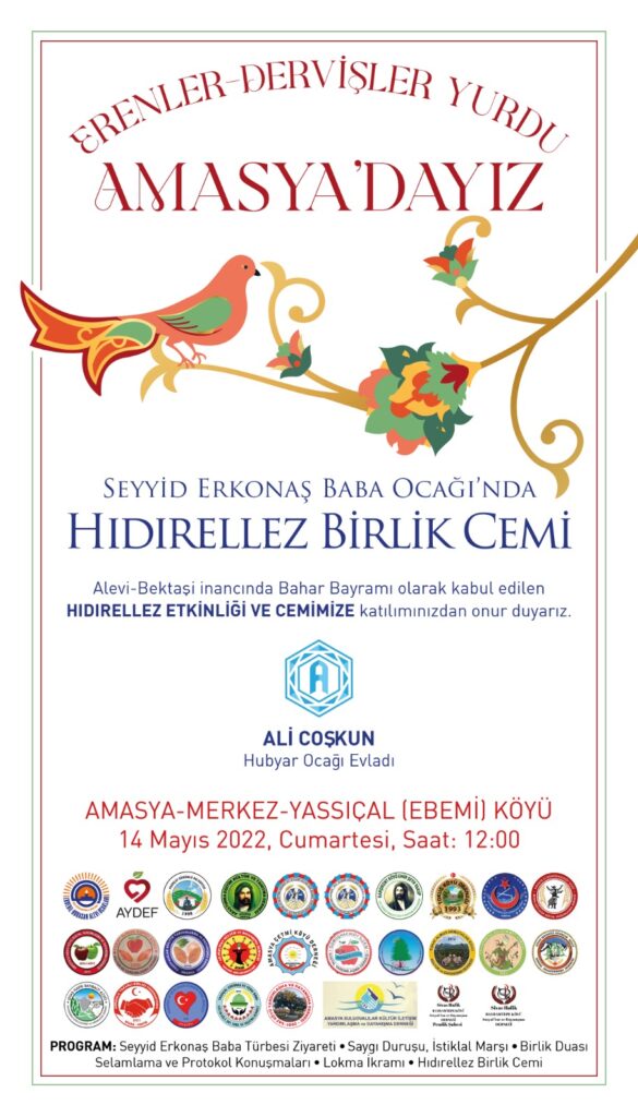 ERENLER VE OCAKLAR YURDU AMASYA’DA HIDIRELLEZ BİRLİK CEMİ 14 MAYISTA ERENLER VE OCAKLAR YURDU AMASYA’DA HIDIRELLEZ BİRLİK CEMİ 14 MAYISTA Bu yazı 30 Nisan 2022 tarihinde Anadolunun Sesi Tokat tarafından yazılmıştır.