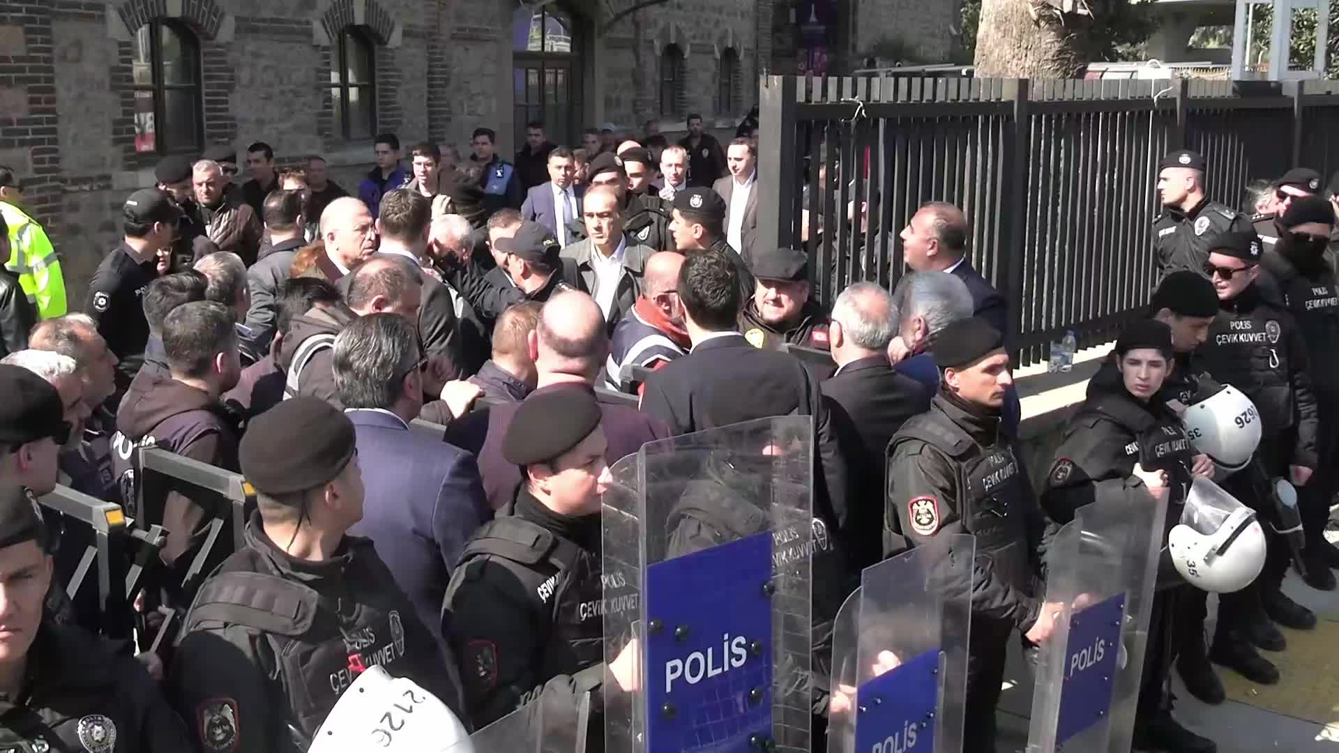 İzmir Büyükşehir Belediyesi tarafından kullanılan ancak Vakıflar Genel Müdürlüğü’ne devredilmesi nedeniyle sabah polis tarafından giriş çıkışları engellenen Meslek Fabrikası önünde arbede çıktı.